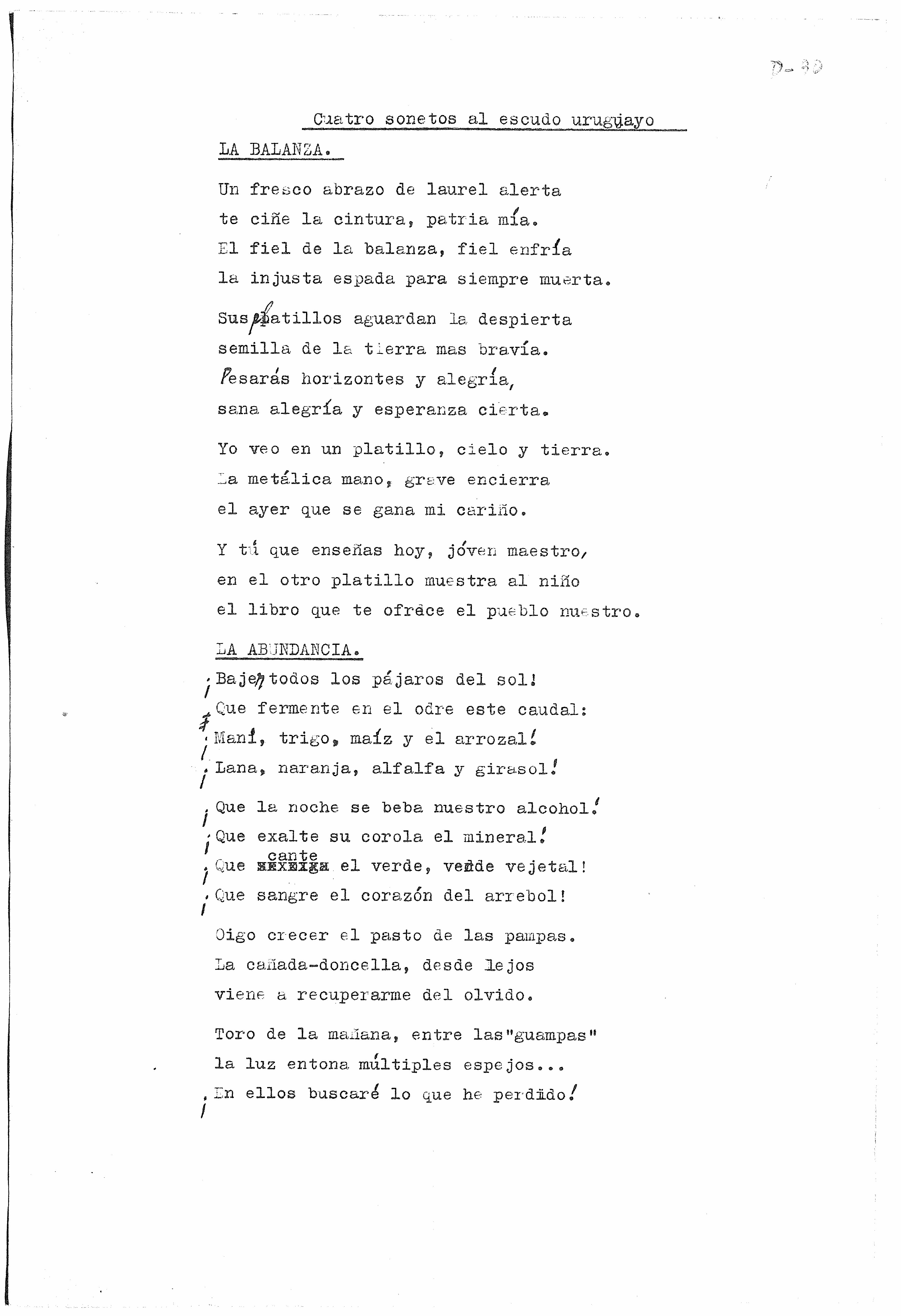 | Primer canto de su libro "Quiero", traducido al francés en 1959 por Ángel Mazzara, Salto. | |