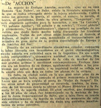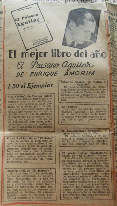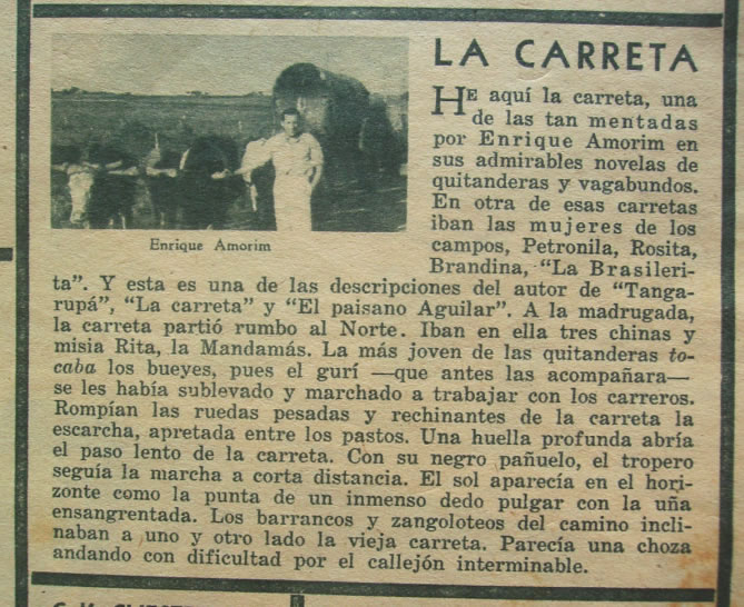 propósito de "La carreta" de Enrique Amorim Amadeo J. Arosteguy, Acción, Montevideo, 4 de febrero de 1933, Pág. 6.. (Archivo PDF, 432 Kb) |