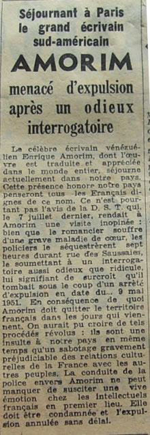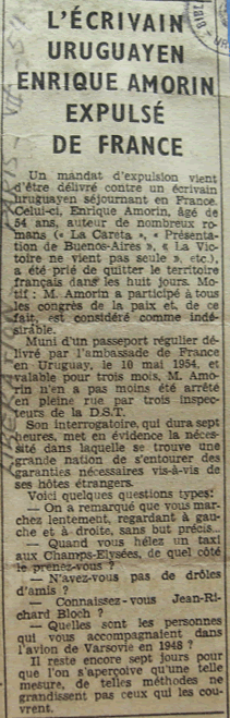 | Le écrivain uruguayen Enrique Amorim expulsé de France | ||